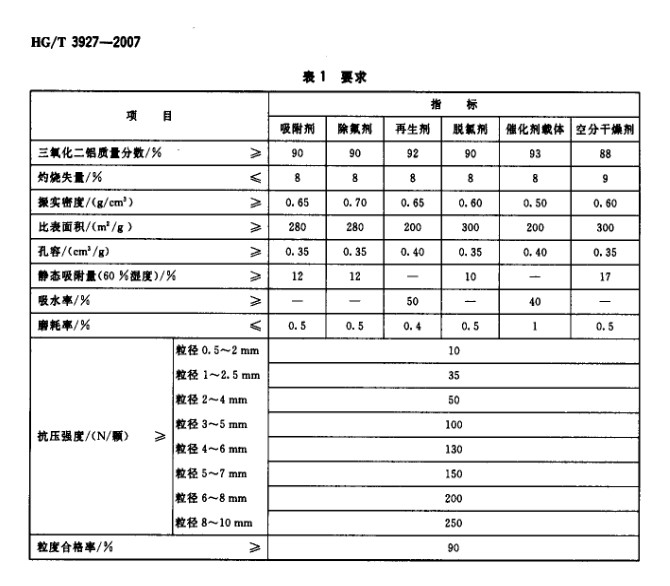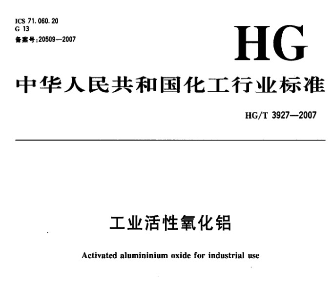 工業(yè)活性氧化鋁行業(yè)標(biāo)準(zhǔn)HG/T3927-2007國家標(biāo)準(zhǔn)